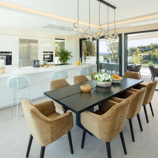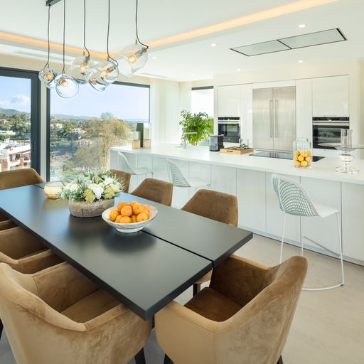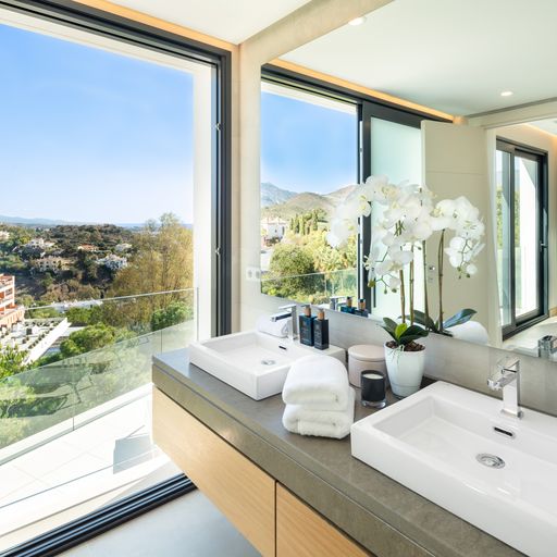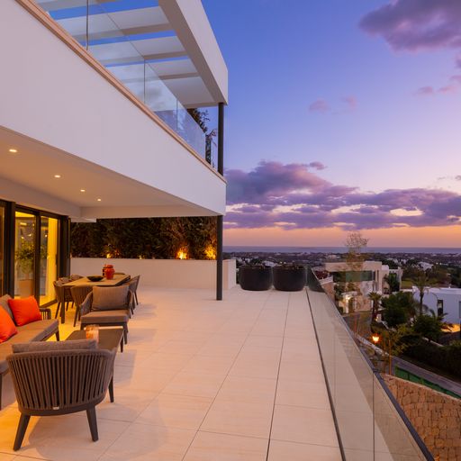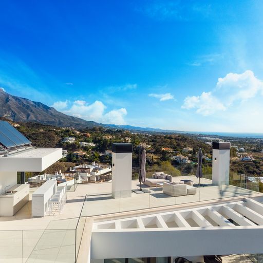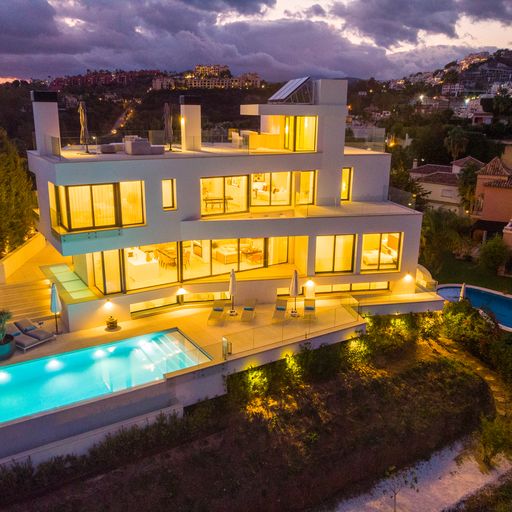 Egy kortárs építészeti remekművet kinálunk lenyűgöző panorámával a tengerre, a hegyekre és a városra az exkluziv La Quinta környéken. Az aprólékosan kidolgozott, nyitott életetterű ingatlan közel 1500m2-es saját telken épült. A lenyűgöző főlakosztály lélegzetelállító, tengerre néző kilátással, saját terasszal és luxus fürdőszobával rendelkezik. Több vendéglátásra alkalmas szabadtéri terület veszi körül a villát, illetve látványos tetőterasz, feszitett viztükrű medence és saját wellnessközpont melyhez beltéri medence, szaunal és törökfürdő is hozzá tartozik.