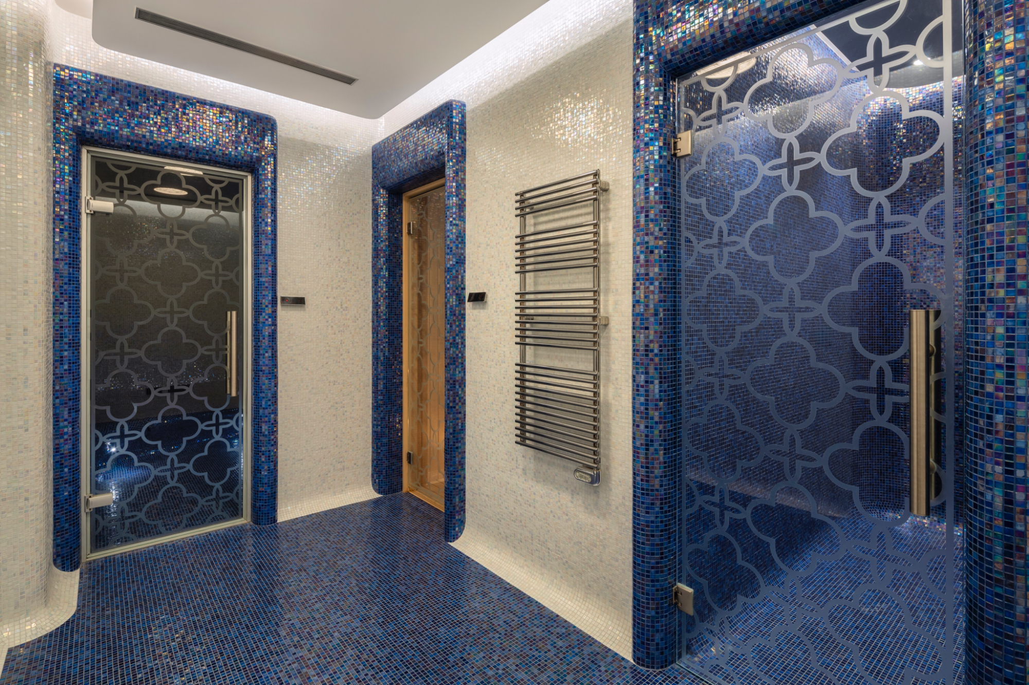 mélykék csempével díszített, hammam és törökfürdő kínál kellemes kikapcsolódást
