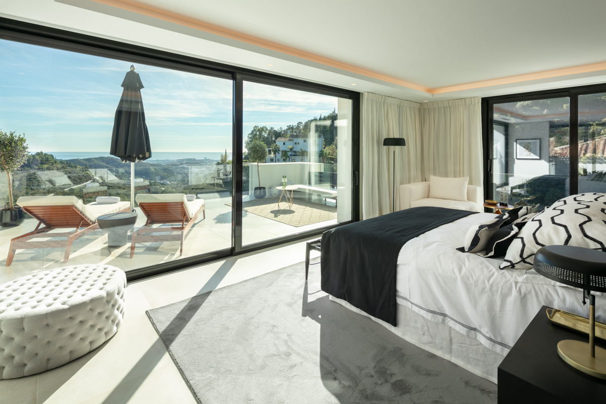 Látványos villa El Madroñal hangulatos domboldalában. A villa a domboldalnak köszönhetően magasan helyezkedik el, csodálatos kilátást nyújt a tengerre.